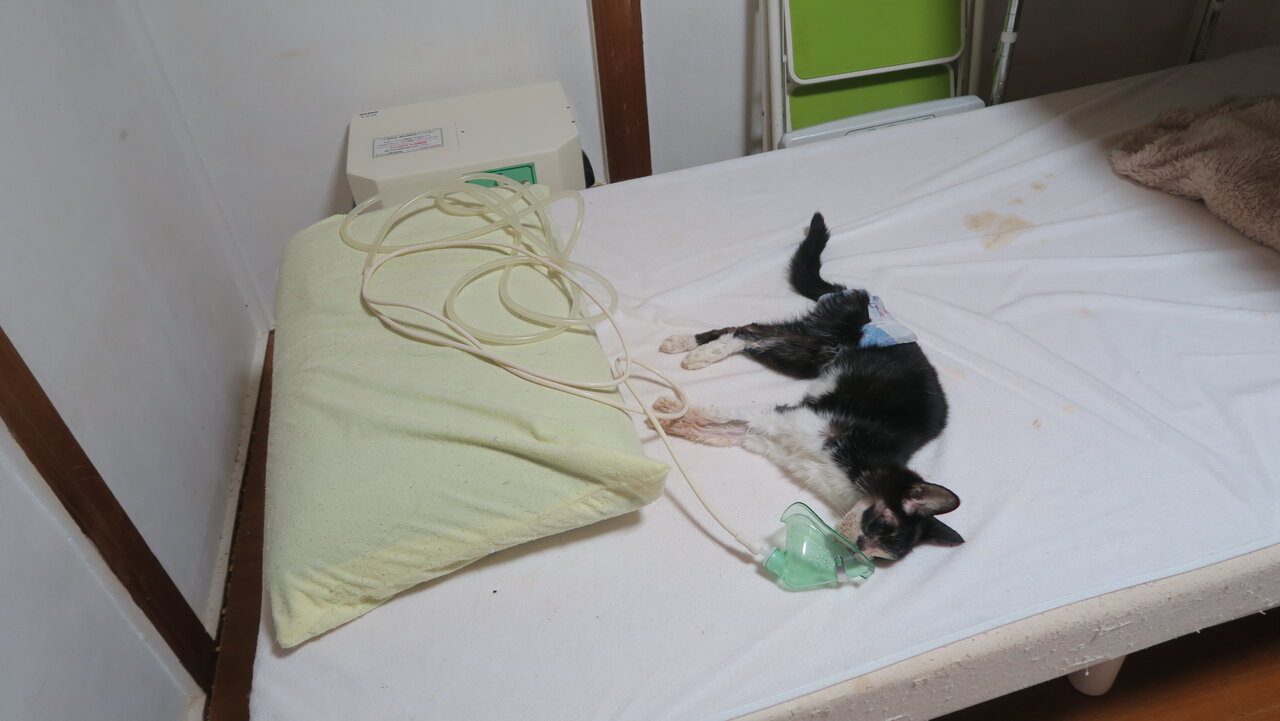 慌てて酸素吸入器を引っ張り出してセットする。