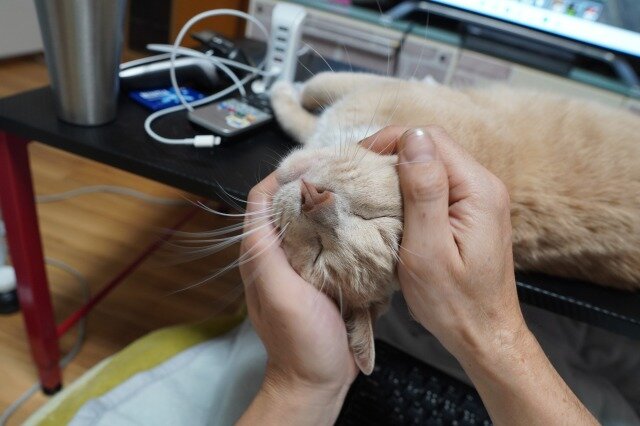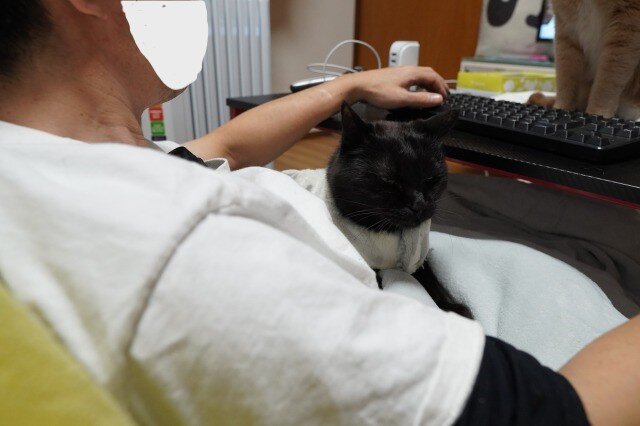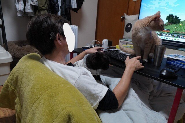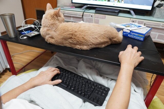 おかげでキーボードは机から追い出されまーちゃんの膝の上に強制移動。