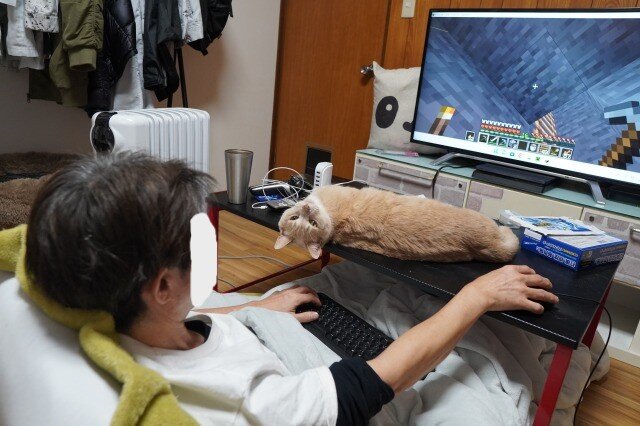 今日の茶毛はまーちゃんの操作するマインクラフトの世界をのんびり満喫。